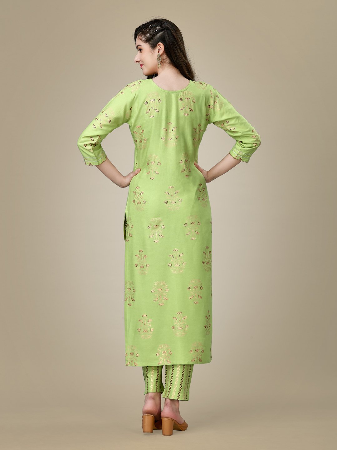 Premium Rayon Embroidered Kurti with Pant Set – Parrot Green (Liva Approved)